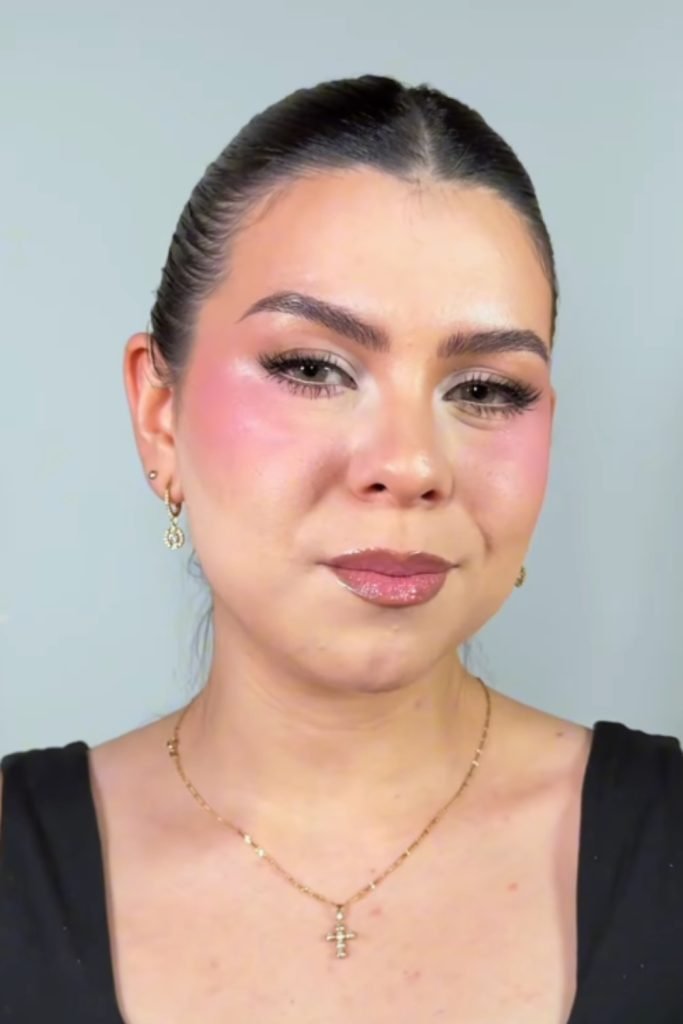 Define your eyebrows neatly to frame your face. Apply a generous amount of pink blush on your cheeks, blending upwards towards the temples for a youthful flush.