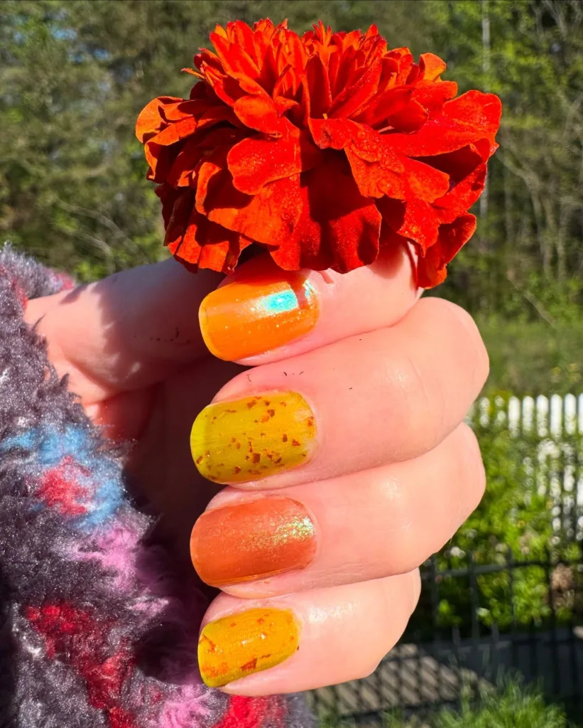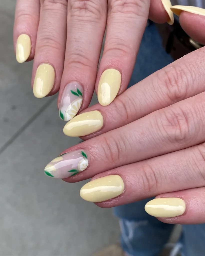Bright yellow nails instantly lift your mood and scream summer energy. Think of a perfect pitcher of ice-cold lemonade—refreshing, vibrant, and cheerful. I love pairing a solid yellow nail with a couple of accent nails that feature tiny lemon slice designs. Look for highly pigmented yellow polishes like OPI’s “Sun, Sea, and Sand in My Pants.”