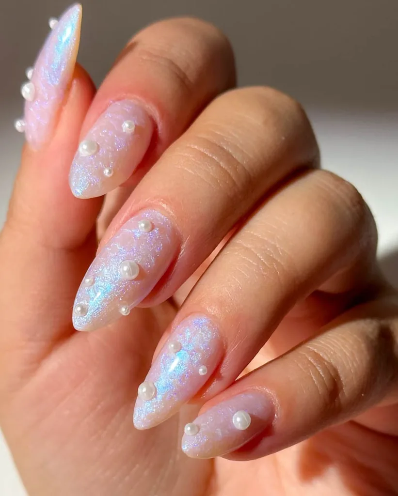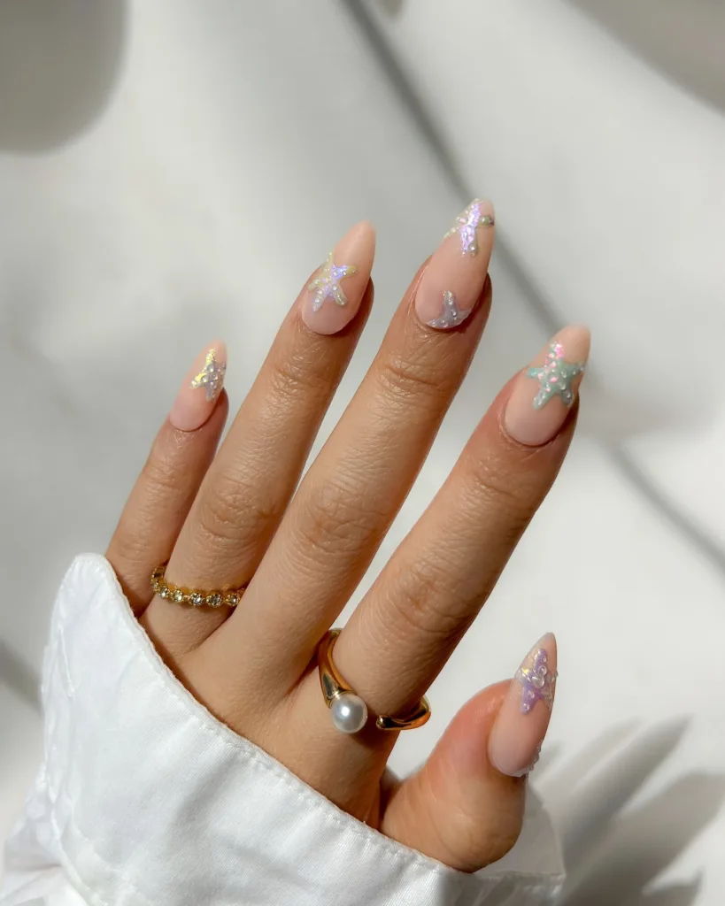 Clear or “jelly” nails have been trending for a while, but they feel even fresher with tiny embedded charms like seashells, stars, and mini fruits. You can find packs of adorable nail charms online that instantly upgrade a basic clear manicure into something truly show-stopping.