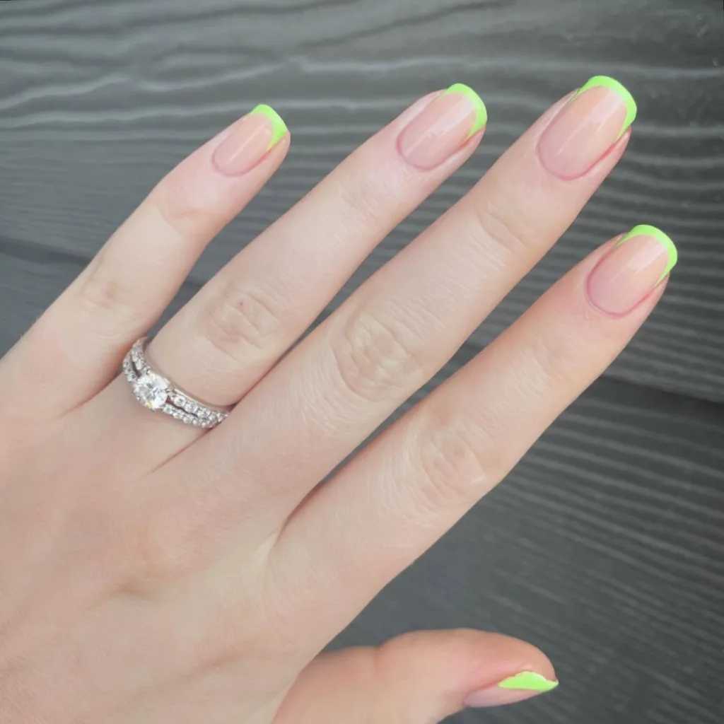 Classic French tips are getting a summer makeover with electrifying neon colors. Replace the traditional white with a pop of hot pink, electric yellow, or lime green. This style is low-commitment if you prefer a neutral nail bed but still want to embrace the season’s vibrant energy. I swear by Modelones Neon Gel Polish Kit to nail this look.