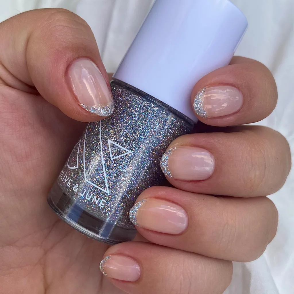 If you’re looking for a subtle sparkle, glitter tips are your go-to. Think of a neutral or nude base with a heavy glitter focus just on the tips for an understated but glam look. I always use a fine glitter polish to avoid chunky textures and recommend trying Gellen’s Glitter Gel Set for a smooth, dazzling application.