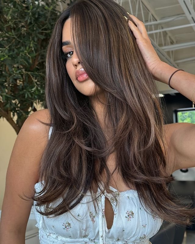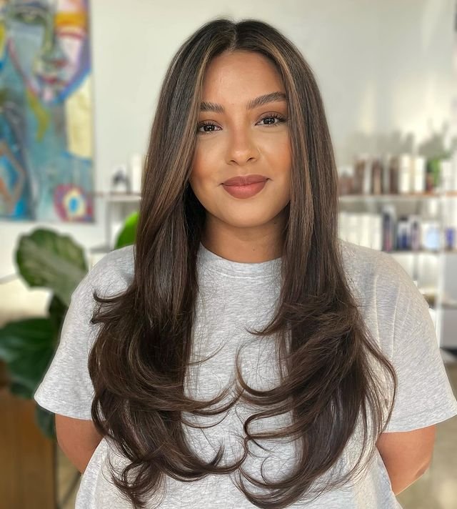 This style combines long layers with subtle, sun-kissed highlights to create a natural, voluminous look. The layers start mid-length, offering a soft texture while the highlights accentuate the layers.