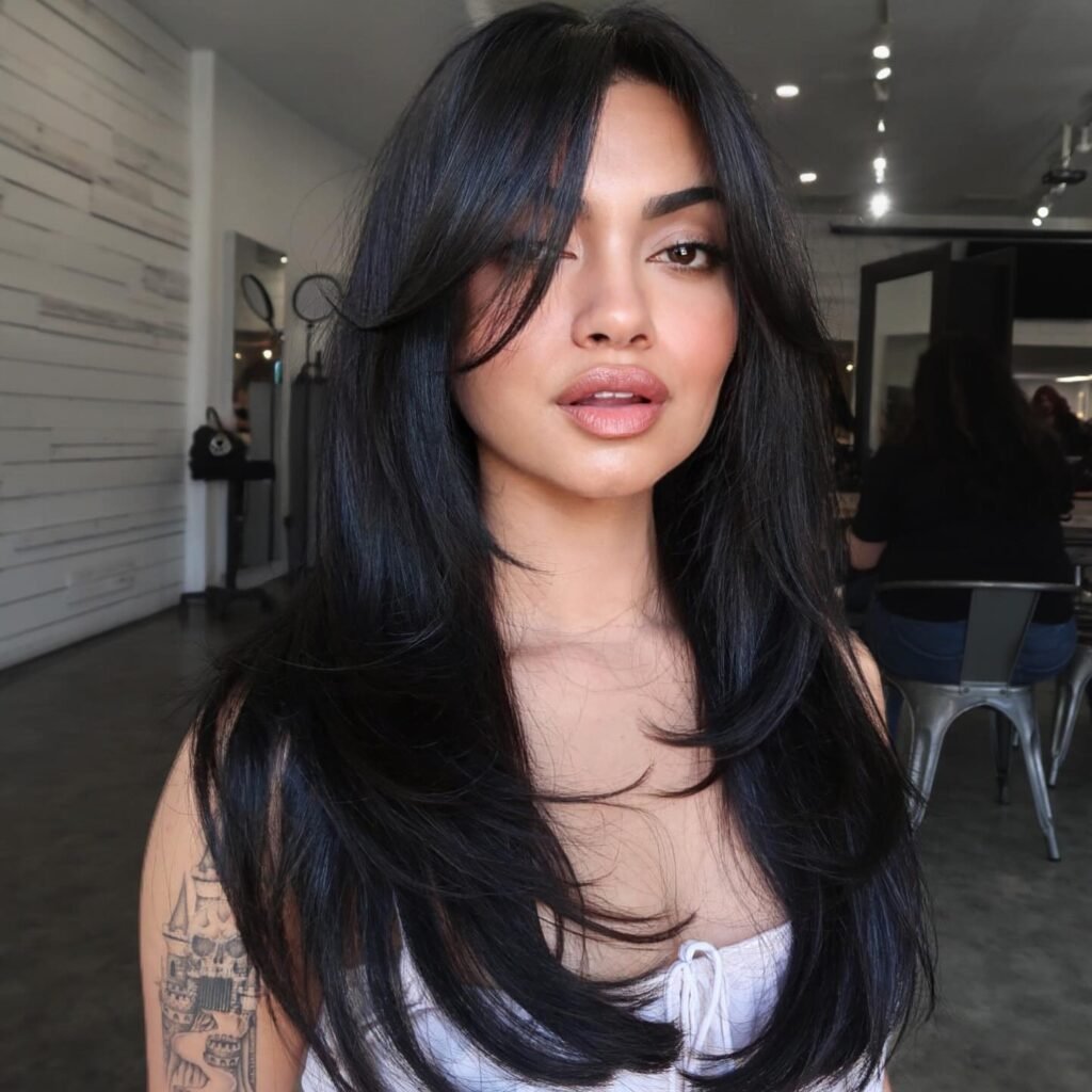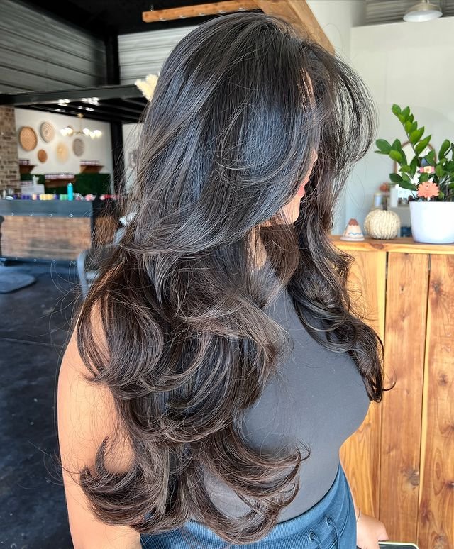 This cut features long layers that taper toward the ends, creating a swoopy, elegant effect. The layers give the hair movement without losing its overall length. To get this look, ask your stylist for long layers that start at the shoulders and gradually thin out towards the ends.
