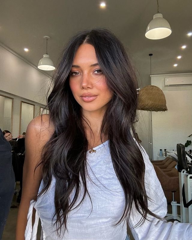 To achieve this, ask for long layers that begin mid-length and have a clean middle part. Blow-dry the hair straight and finish with a flat iron for a smooth finish. Add a shine serum for extra gloss. This look works best for straight hair, giving a sleek, refined appearance that highlights the healthy texture of the hair.