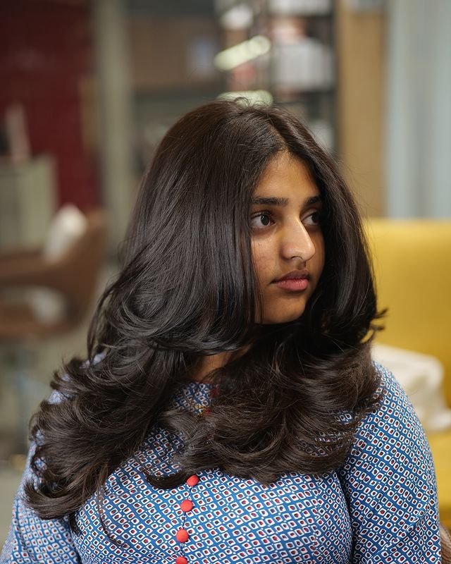 To recreate this look, ask for feathered layers starting at the cheekbones and continuing throughout the length. Blow-dry with a round brush to create movement and lift at the roots, ensuring the layers maintain their bounce. This style works well for anyone wanting texture and face-framing structure without losing overall length.