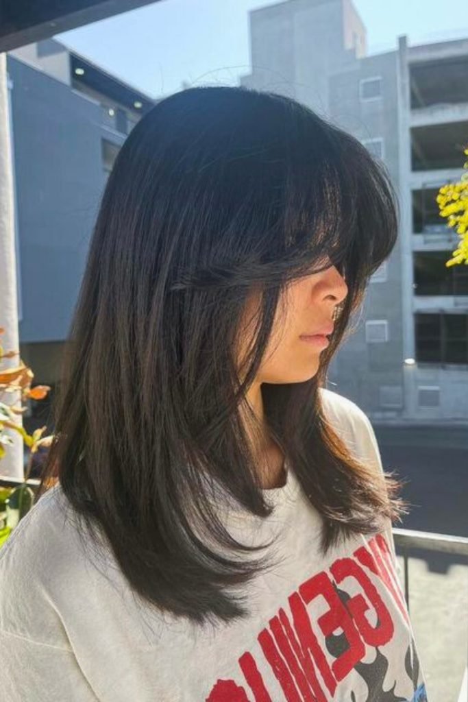 A deep side fringe pairs beautifully with long layers. The fringe adds a touch of mystery and sophistication, while the layers add volume and movement.