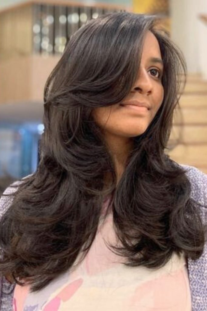 For a bold and modern look, try long layers with an edgy twist. These layers are cut at different angles, creating a unique texture that’s full of personality.