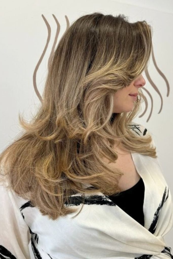 Deep side parts can be incredibly glamorous when paired with long layers. The layers enhance the side-swept look, adding volume and movement.