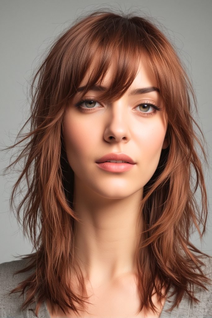 Combine long layers with shaggy bangs for a boho-chic look. The layers add volume and movement, while the bangs create a relaxed and carefree vibe.