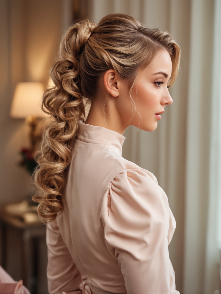Create a soft, romantic look with loose waves. Curl your hair before gathering it into a low ponytail for a relaxed, effortless style.