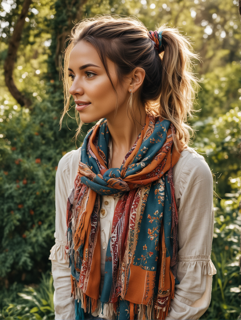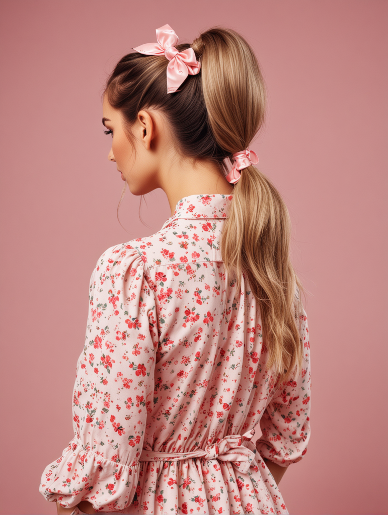 Elevate your low ponytail with a stylish scarf. Fold the scarf into a thin strip and wrap it around the base of your ponytail, tying it into a bow or knot.