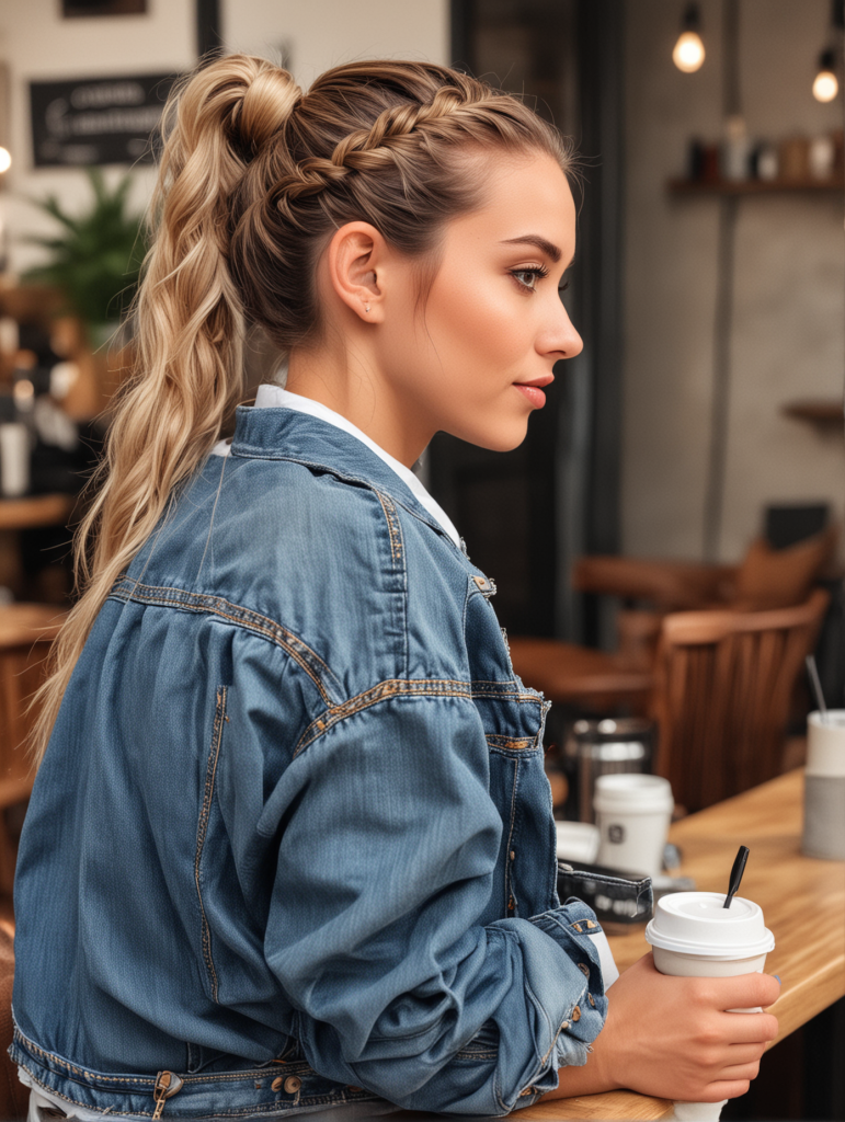 Add a fun twist to your ponytail with a braid wrap. Take a small section of hair from your ponytail, braid it, and wrap it around the base to conceal the elastic.