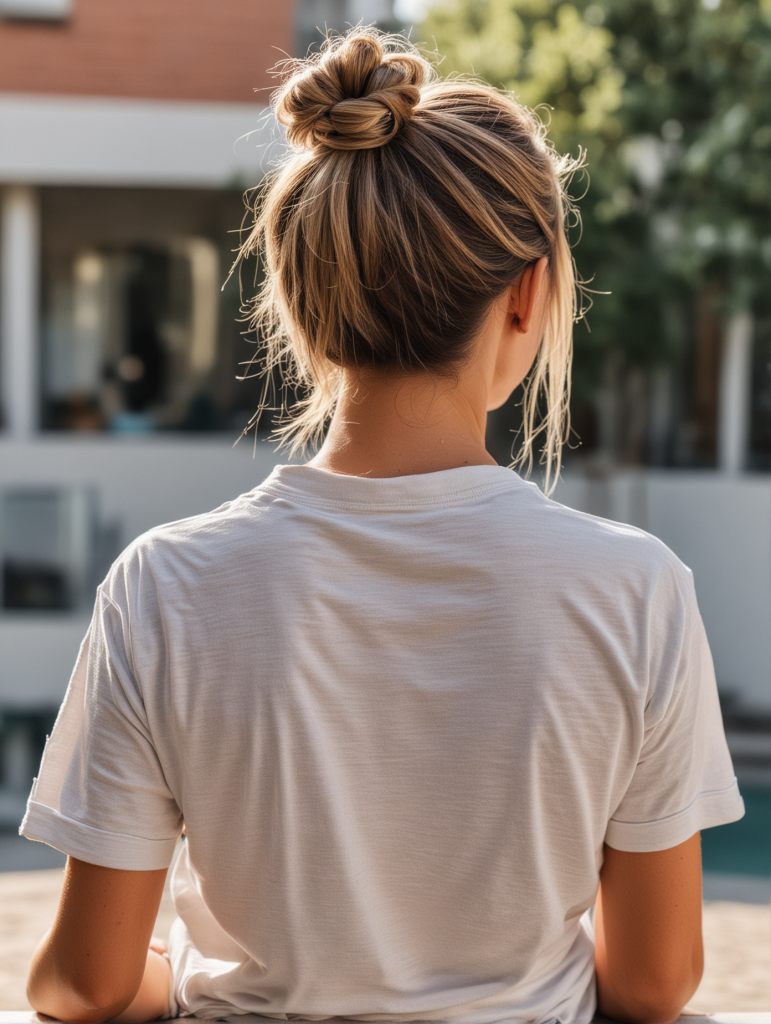 For a relaxed, chic look, go for a messy low ponytail. Leave a few strands loose around your face and gently pull at your ponytail to create a slightly disheveled effect.