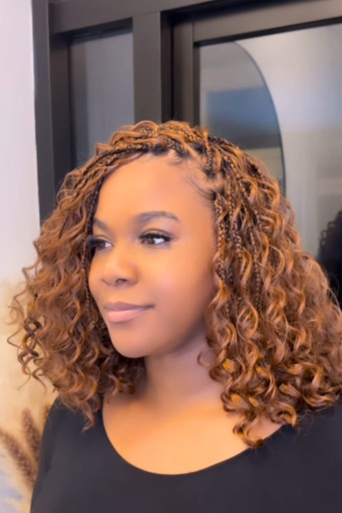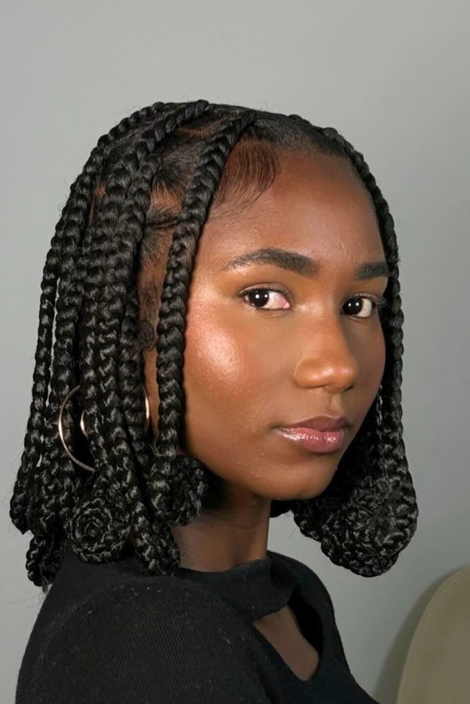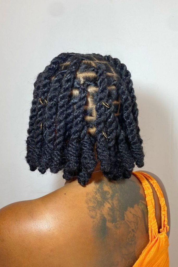 The addition of small gold hair cuffs adds a touch of elegance and personality. Perfect for those who want a bold yet refined hairstyle, Chic Bob Twists are ideal for both casual and formal settings.