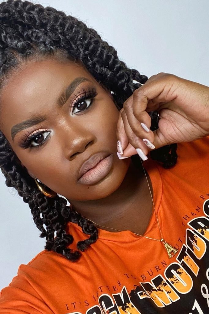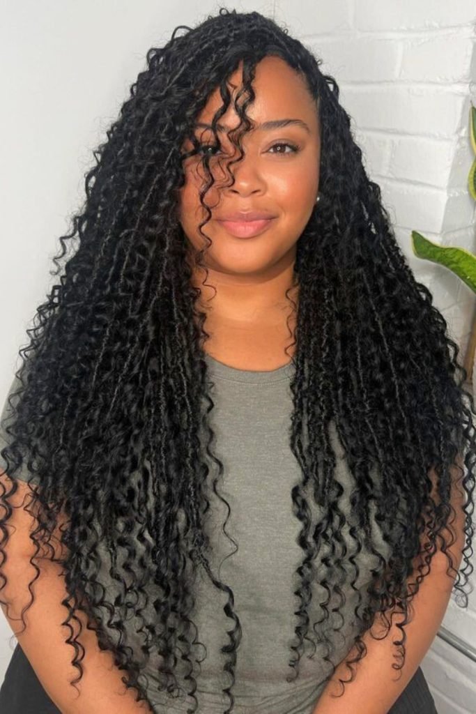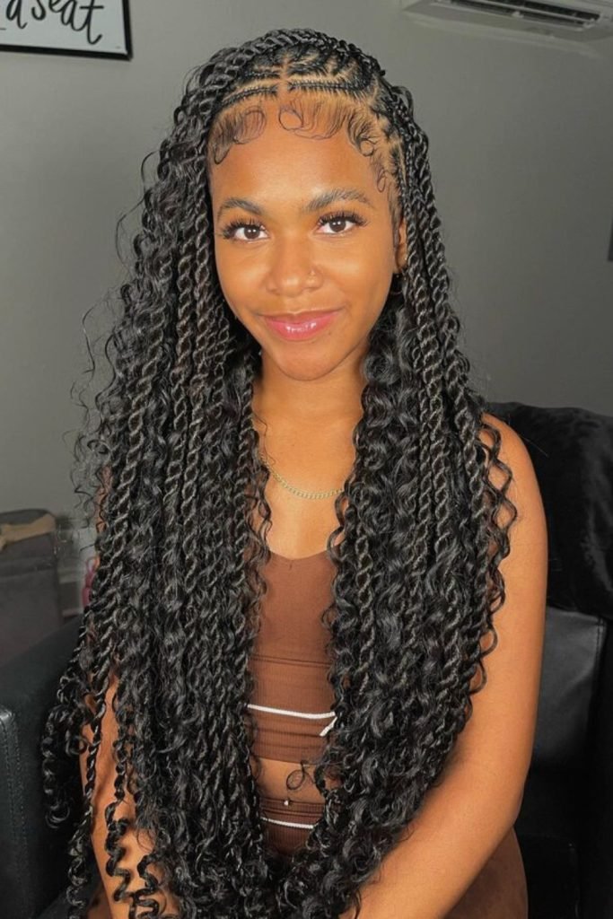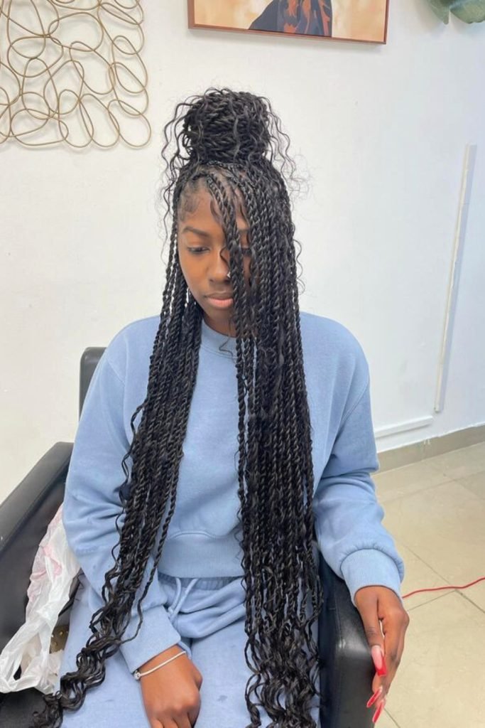 The hairstyle depicted features Boho Goddess Twists, a creative and eye-catching variant of traditional twists.