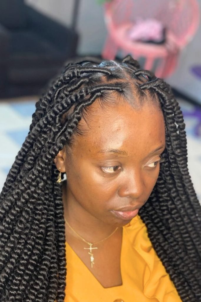 These jumbo passion twists offer a bold and voluminous look, perfect for those who want their hairstyle to make a statement.