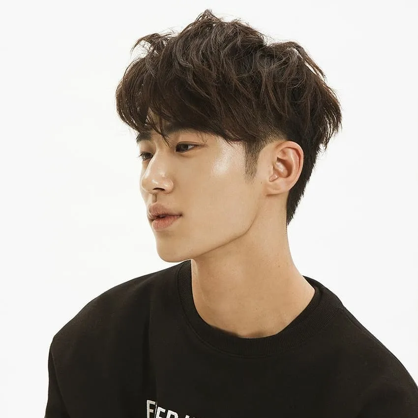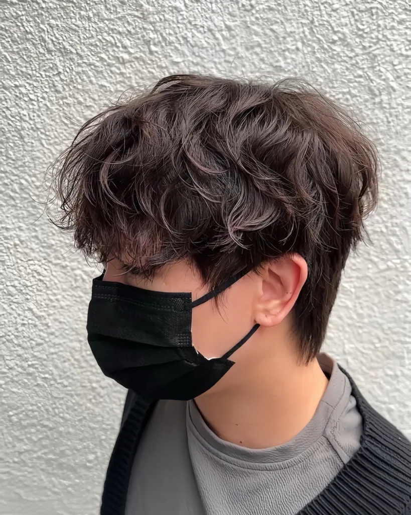 Taking cues from Korean idols, this perm features soft, fluffy waves with a boyish charm. It’s often paired with layered bangs and subtle color tones. A heat-protectant spray and volumizing foam make great gifts to help recreate this K-style flair. This hairstyle is perfect for younger men or fans of pop culture aesthetics.