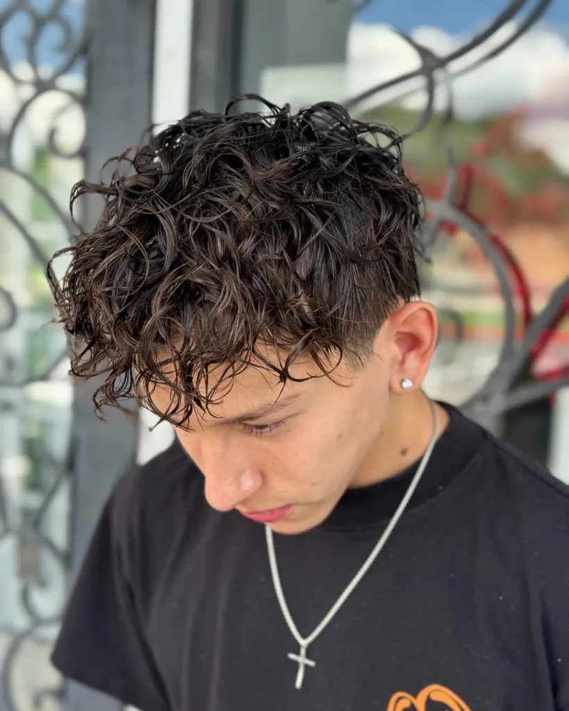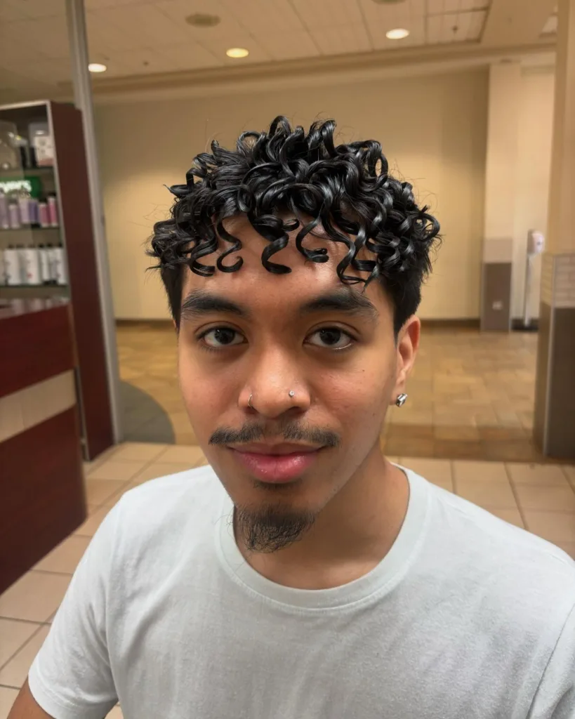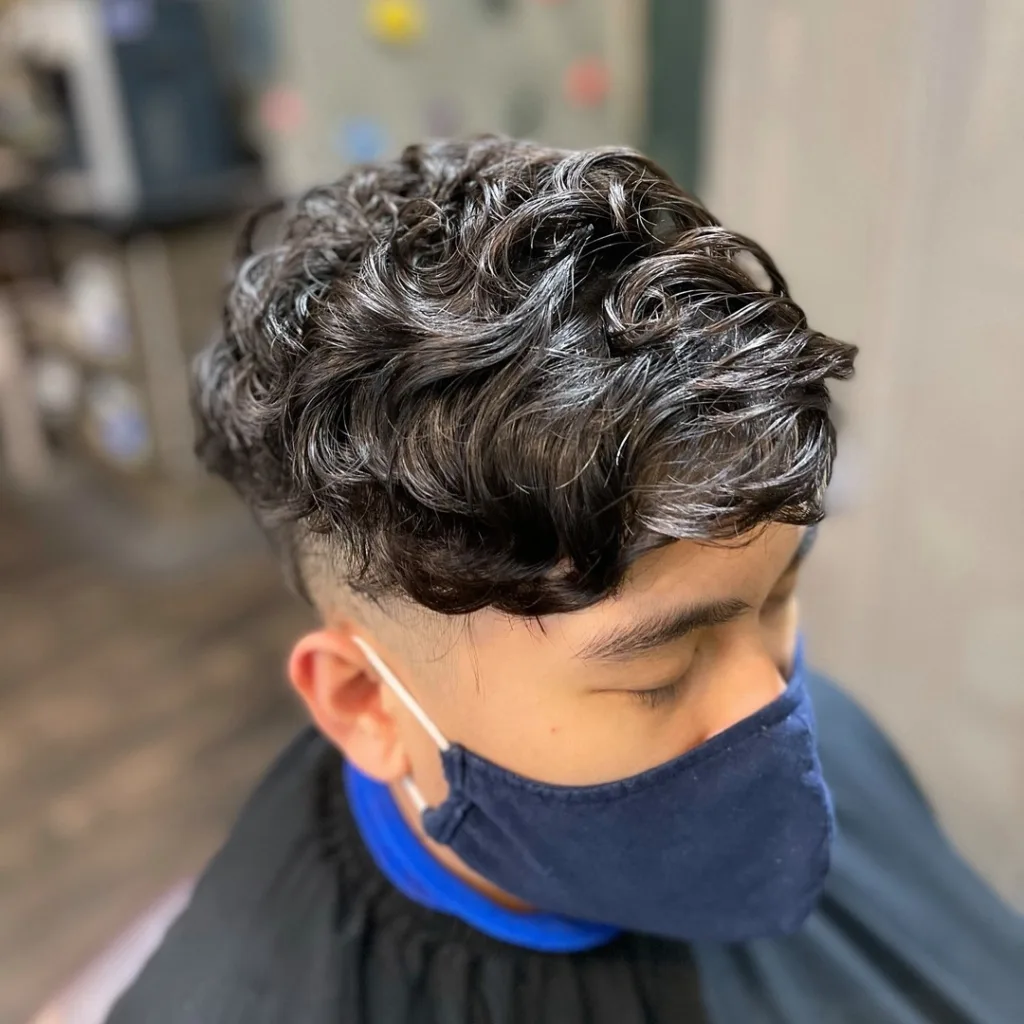 The tapered perm is all about buildable volume and neat edges. It allows curls to gradually fade into shorter sides and neckline, maintaining a well-groomed appearance. Ideal for men who want full texture on top without an overwhelming bulk. Add a curl-enhancing volumizer and microfiber towel to your gift list. This style balances control with creativity.