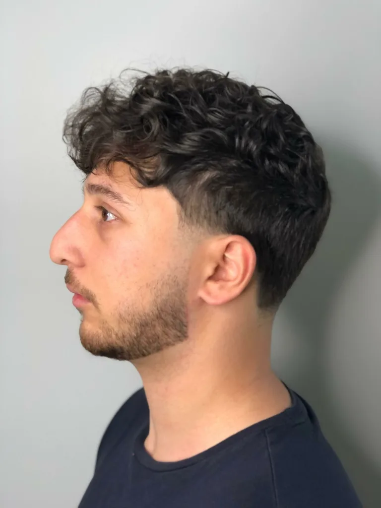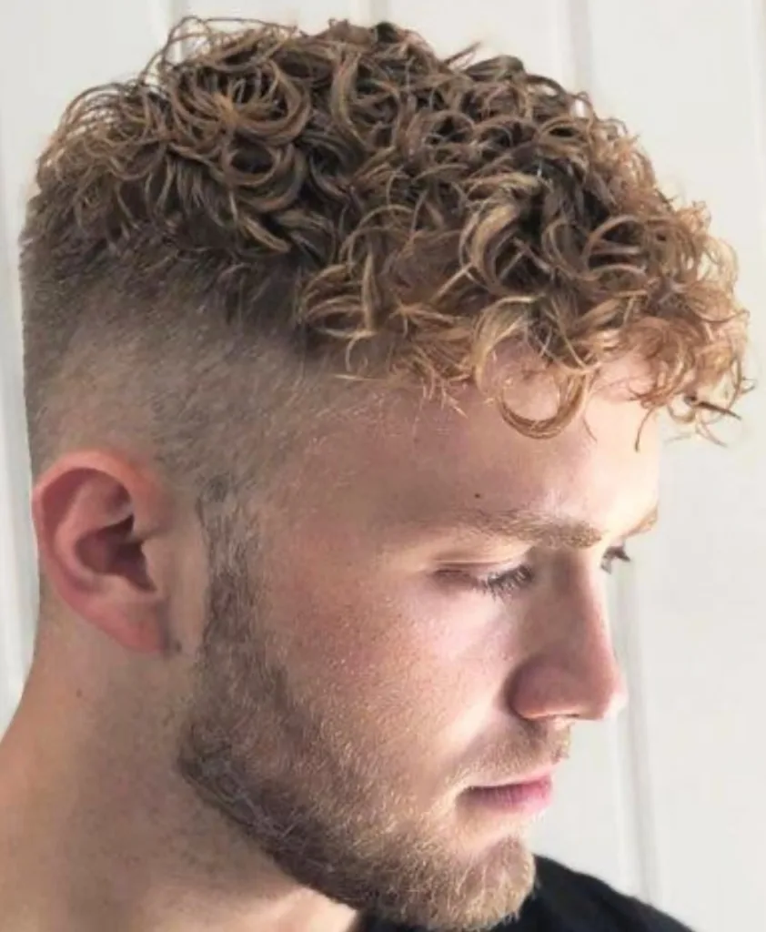 A disconnected fade exaggerates the transition from the permed top to the skin-faded sides, creating a bold, head-turning contrast. This is a statement style that suits confident, fashion-forward men. It works best with medium-length curls that can sit high and proud. For a complete gift set, consider a beard trimmer and a curl activator. This haircut oozes swagger and individuality.