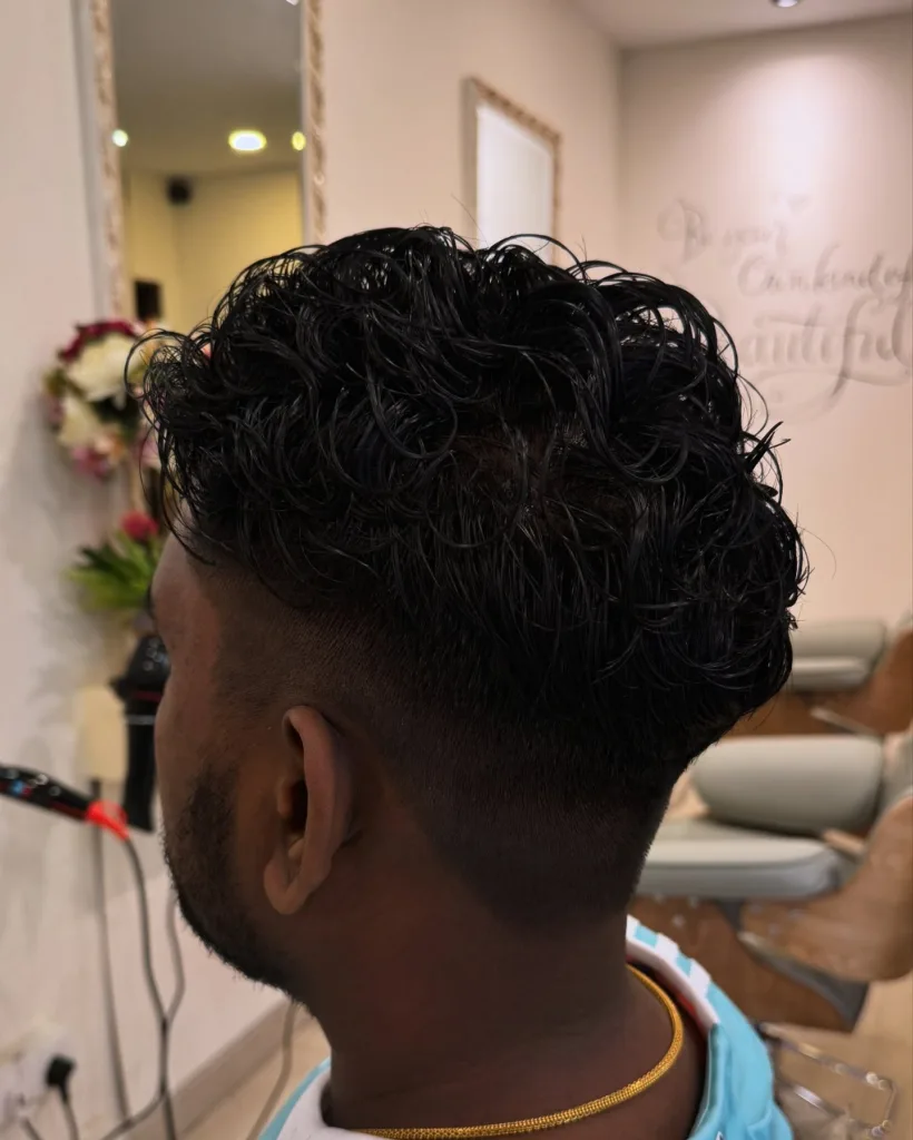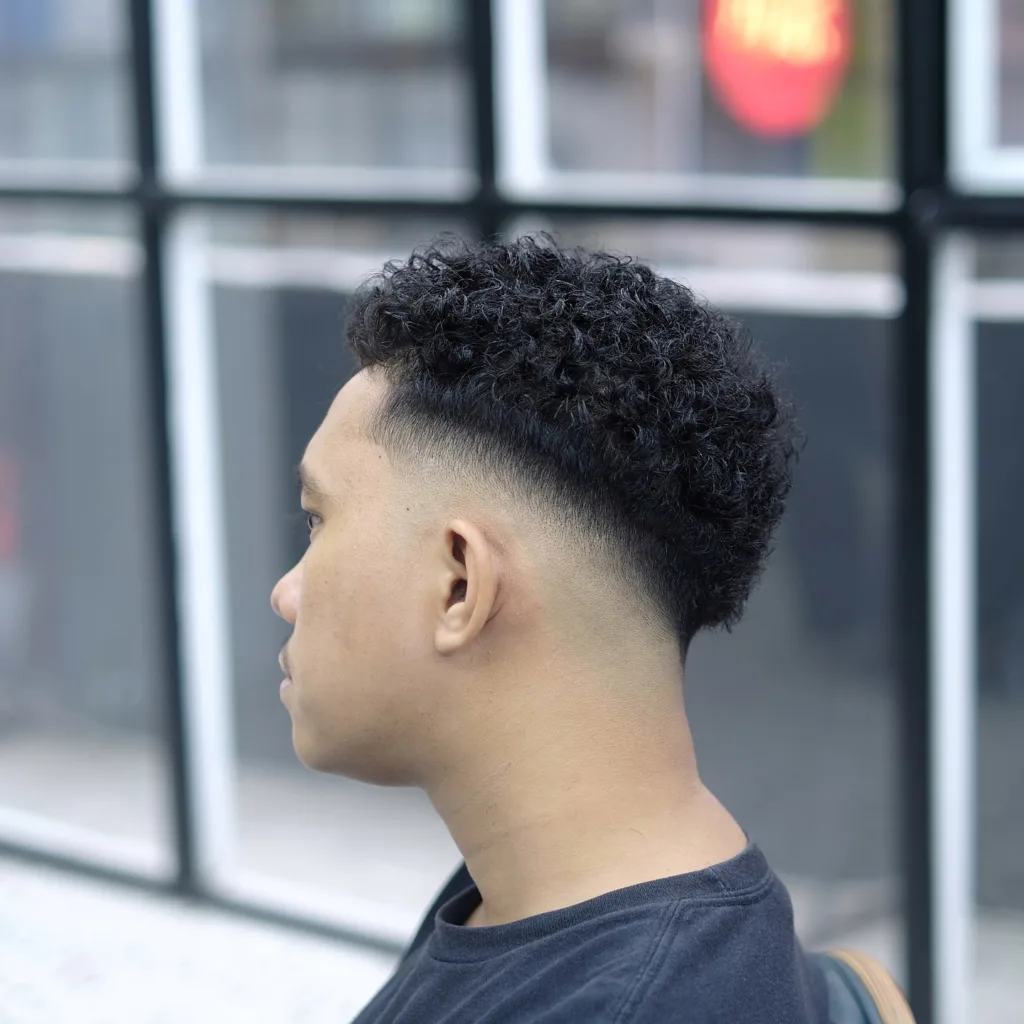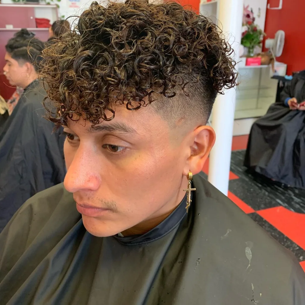 This bold style features a high fade on the sides and a voluminous, permed top. It offers excellent contrast and height, making it ideal for men with round or oval faces. The curls on top add a dynamic edge, while the fade keeps it clean and sharp. Gifting a hydrating curl butter and fade trimmer can help maintain the style at home. It’s a fresh take on a classic shape that feels young and confident.