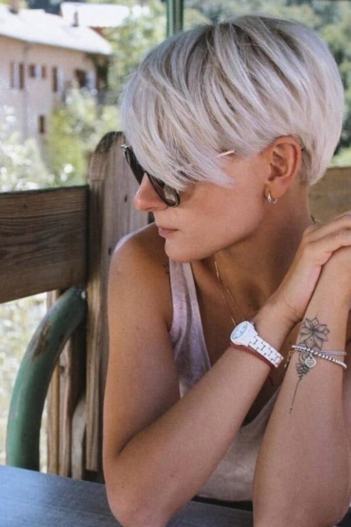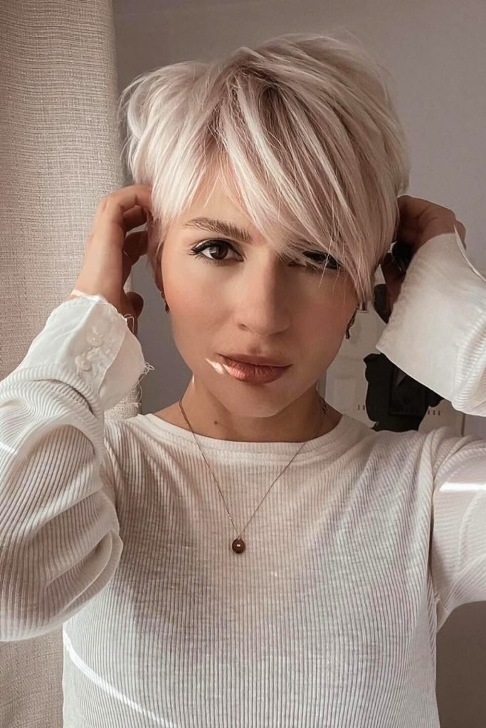 2. Side-Swept Platinum Pixie