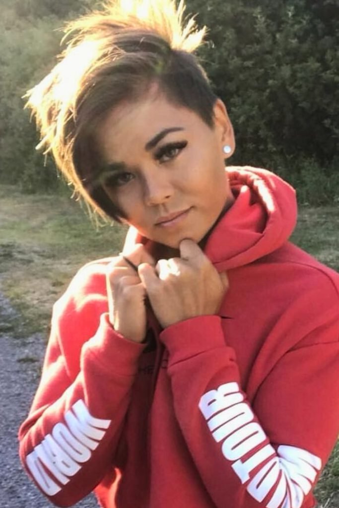 This long-top undercut pixie features a bold contrast between the shaved sides and the longer, layered top.