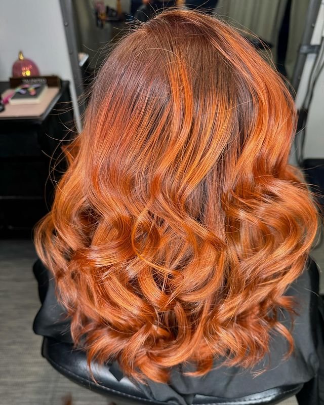 Achieved by pre-lightening the hair to allow the bright copper dye to shine through, this style is especially flattering on curly or wavy textures, adding life and movement to each curl.