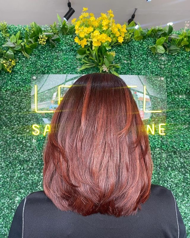 Achieved by using an auburn base and adding copper highlights, this style enhances dimension and warmth.