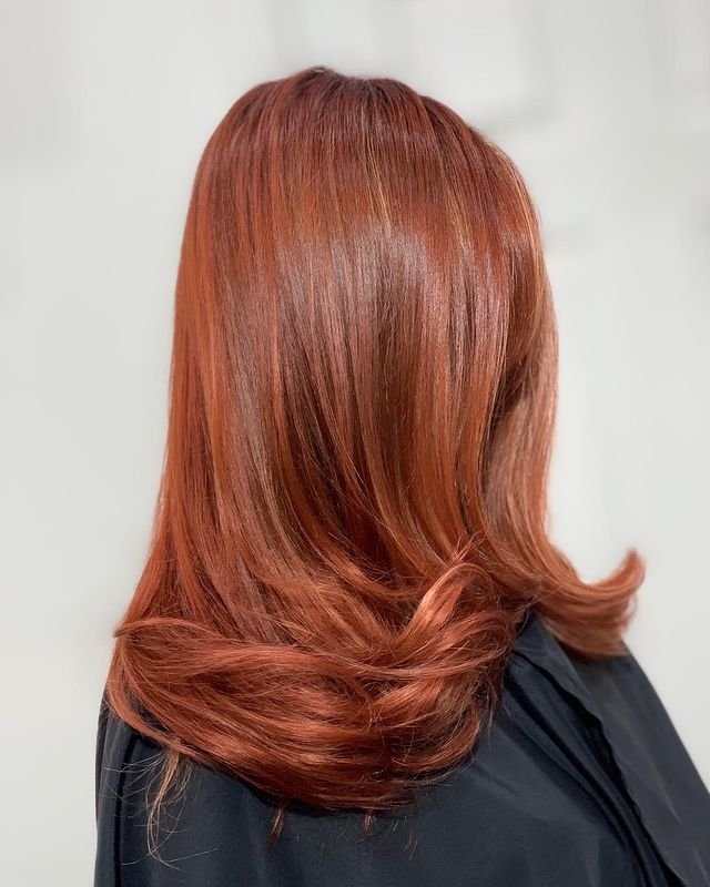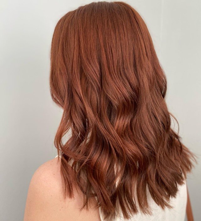 Achieved by applying a high-lift copper dye on pre-lightened hair, this look is best suited for individuals with medium to fair skin tones.