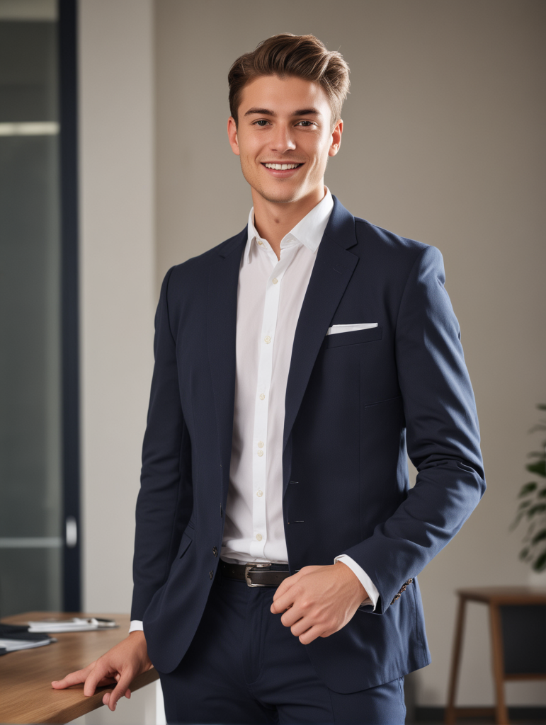 Picture yourself in a crisp suit, with your short hair styled in a neat flow. It’s polished enough for meetings and business events but still has that relaxed feel.