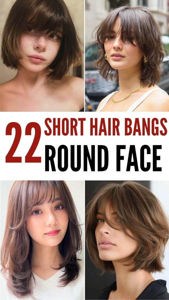22 Flattering Short Hair with Bangs Styles for Round Faces
