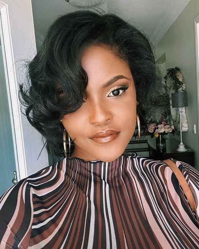 This style adds softness and a romantic touch to short hair, with the side-swept bangs enhancing the overall shape. It’s a versatile look that works well for both casual outings and formal events.