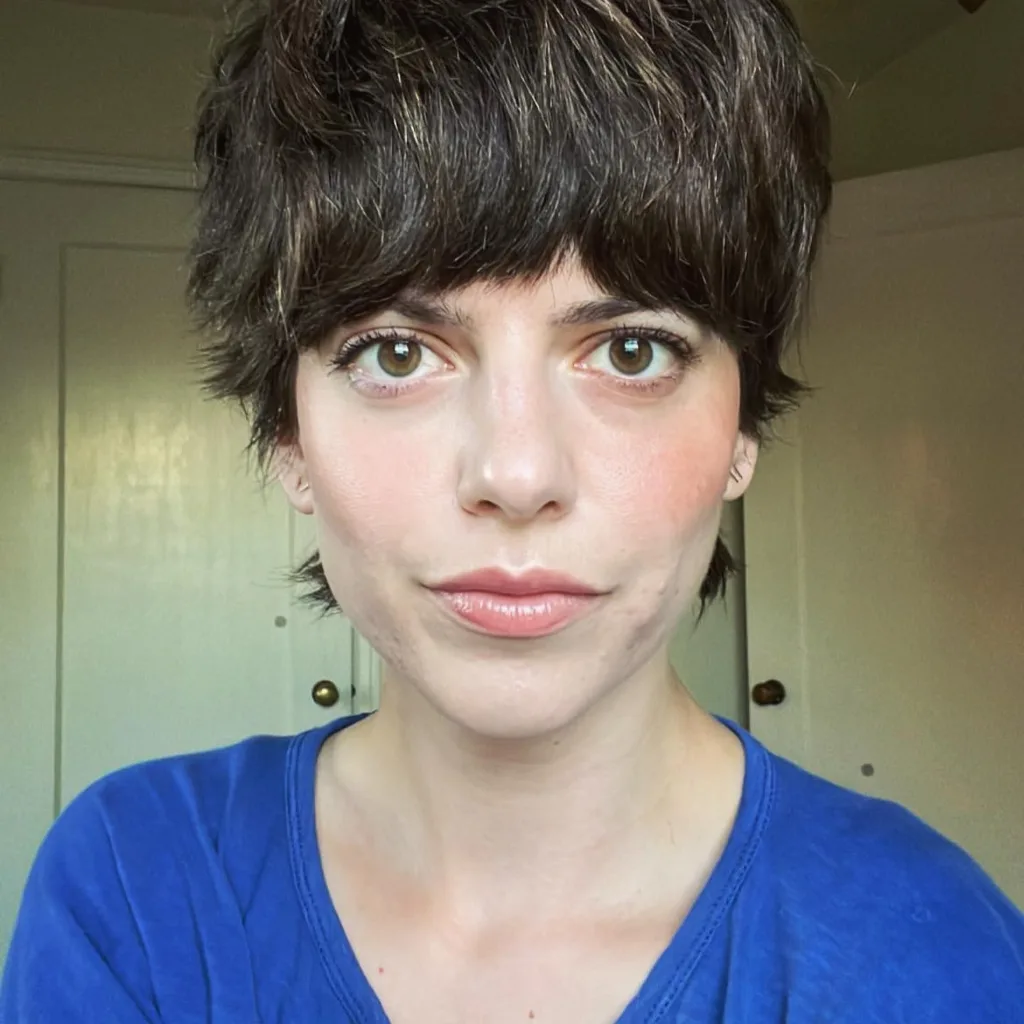 Caramel tones add warmth and richness to this choppy, spiky crown. The haircut plays with length at the top and blends into slightly longer sides for a flattering frame. It’s a great transitional style if you’re not ready for a full pixie. Use a curl-enhancing mousse if you’ve got wave (SheaMoisture Coconut & Hibiscus Mousse is a fave on Amazon). This one’s for the woman who wants movement, color, and a fresh new energy without a major time commitment.