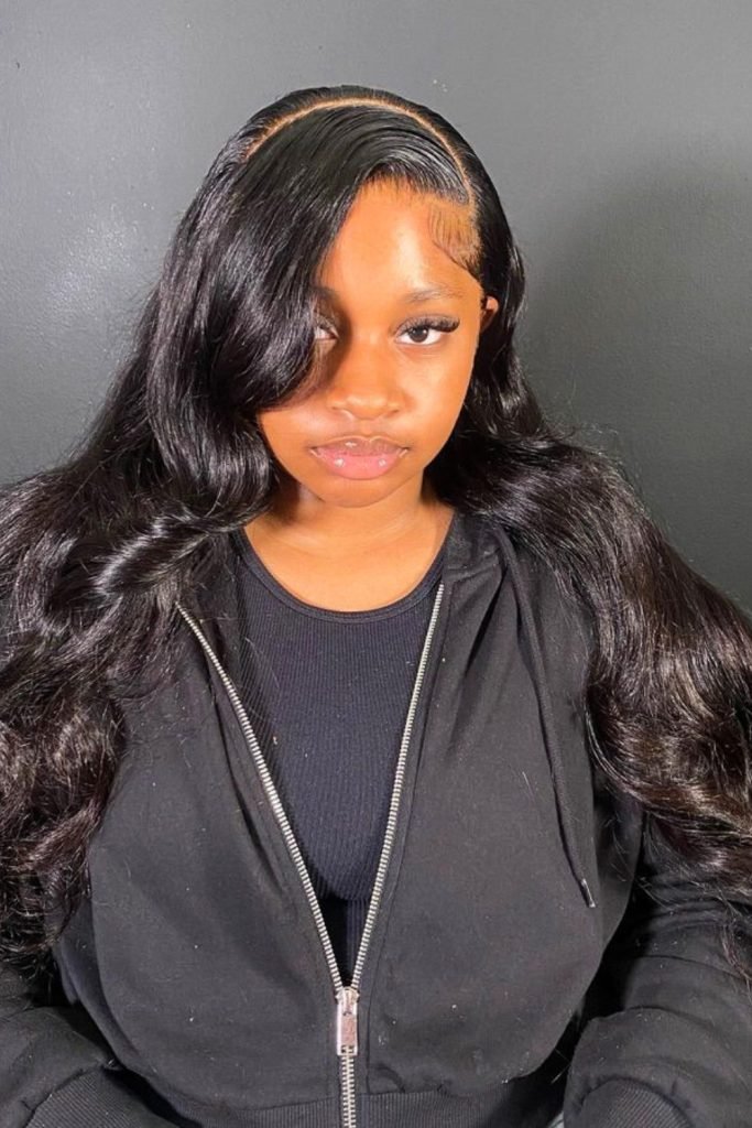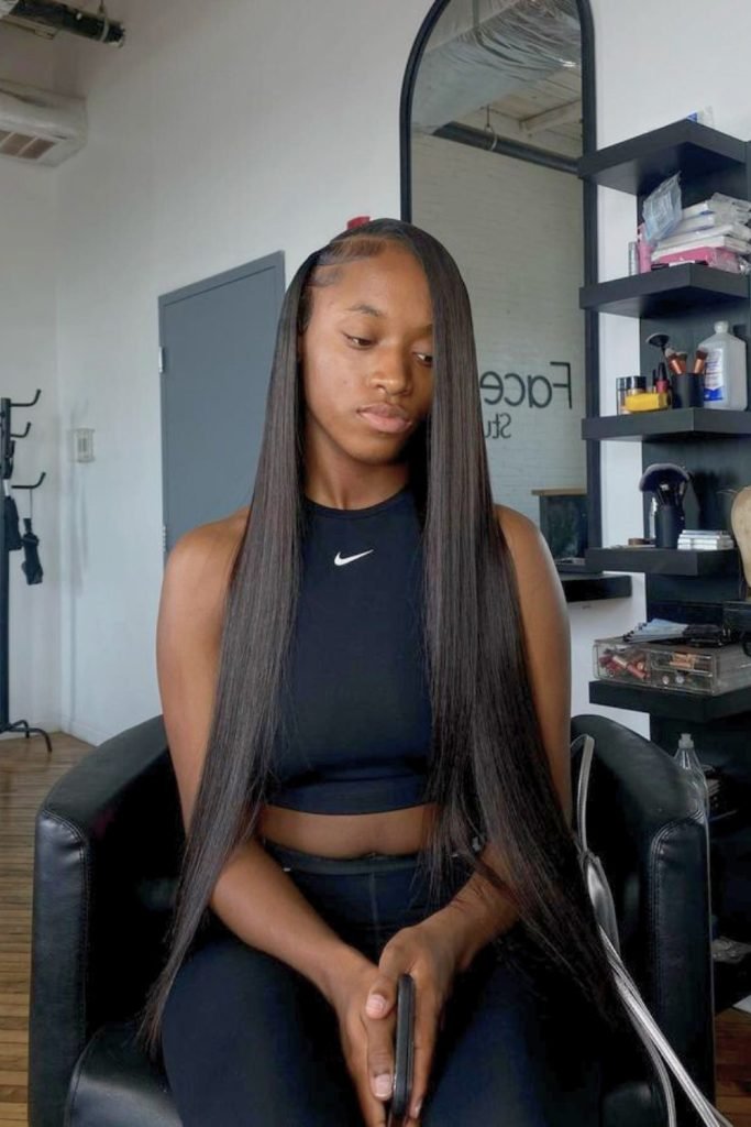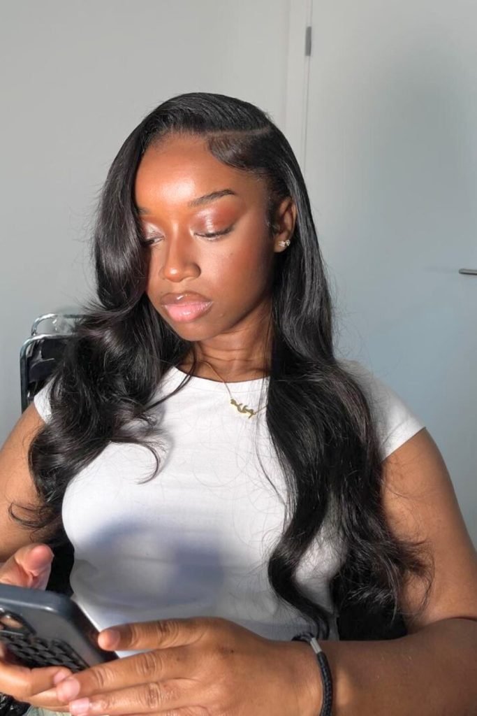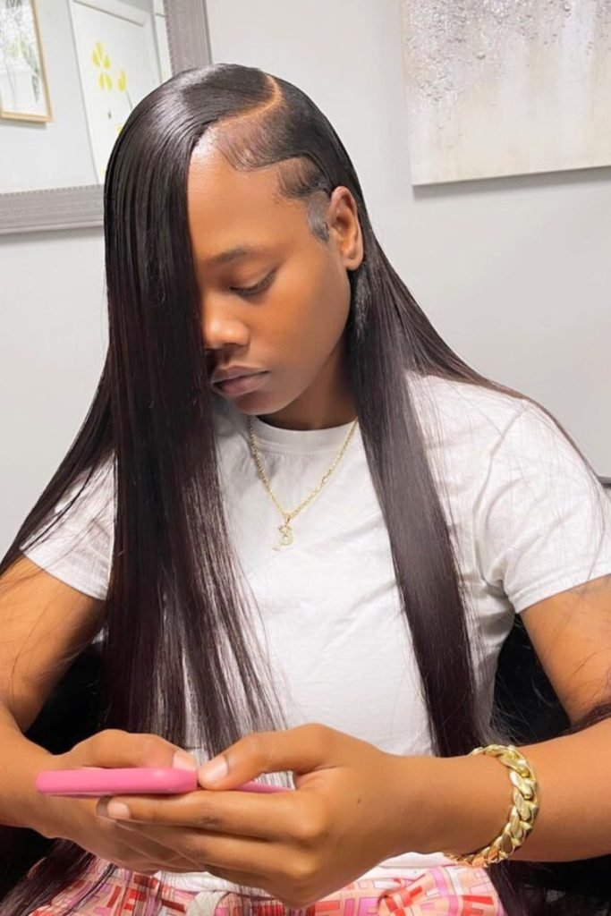 7. Long Side-Parted Sleek Hair
