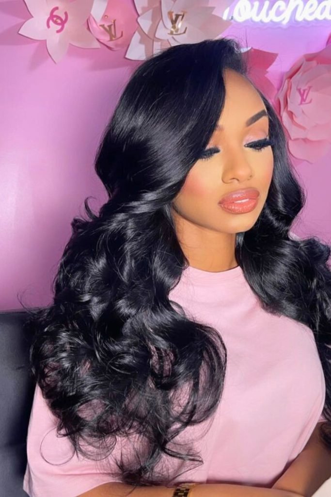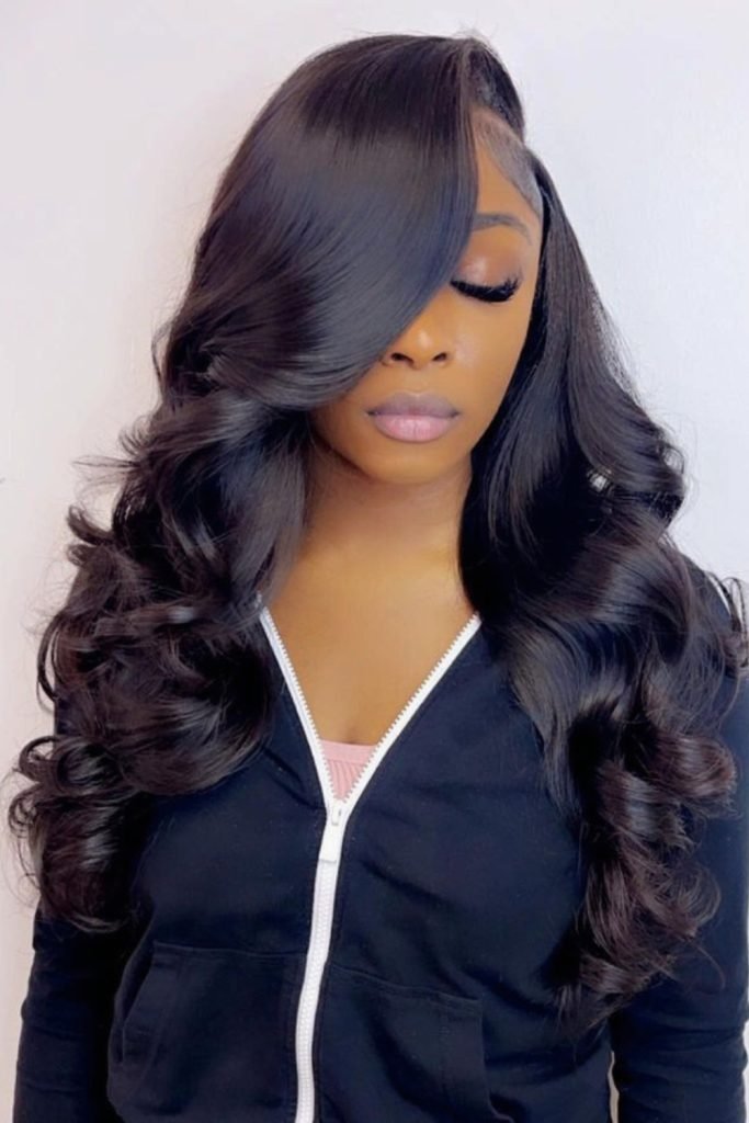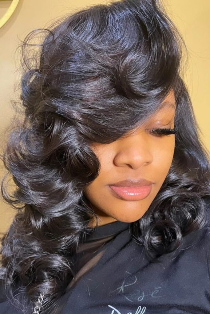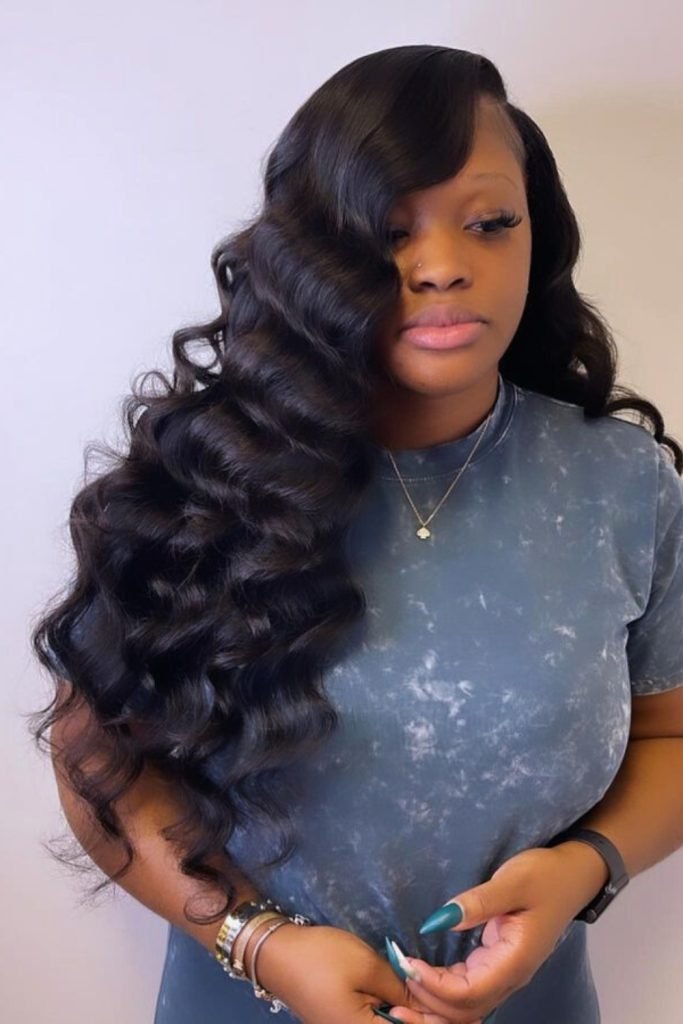 Voluminous side-parted waves are a glamorous choice for those seeking a dramatic and eye-catching hairstyle.