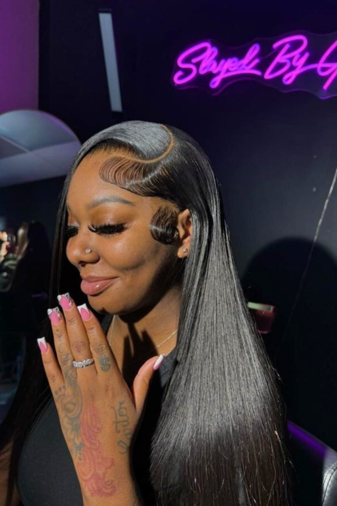 27. Sleek Side Part with Swirled Baby Hairs