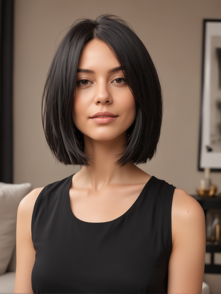 To achieve this look, your stylist will cut your hair into a blunt shape and add subtle layers throughout.