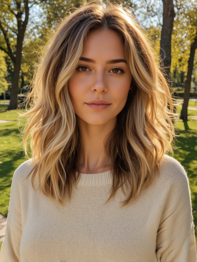 Adding soft layers to balayage hair can enhance the dimensional color and give your medium-length hair a more dynamic look.
