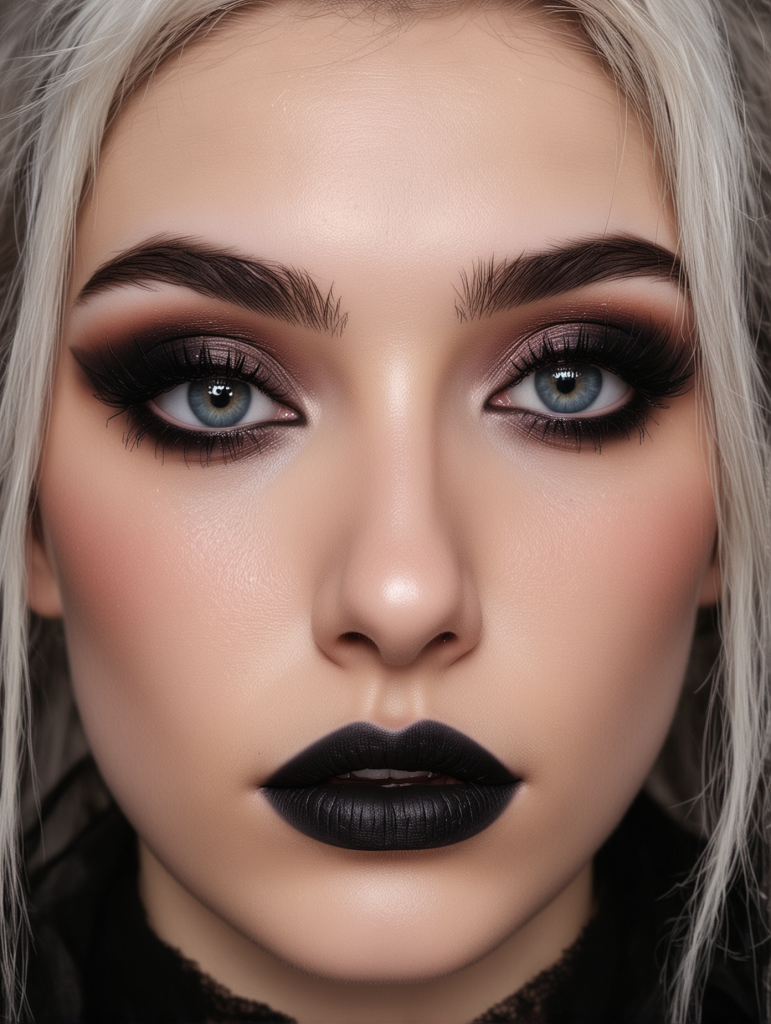 The brown tones add depth and drama without being too overpowering. Pair it with soft red lips for a touch of color that’s still in line with the goth aesthetic.