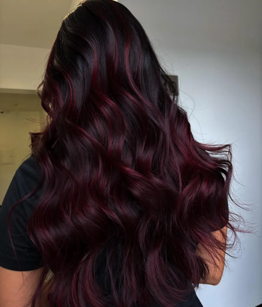If you love rich, luxurious colors, mulled wine might be your perfect spring pick. A mix of dark plum and red wine, this shade brings mystery and sensuality to your look. It flatters darker hair bases and transitions beautifully from day to night. This hue feels especially striking when styled in updos or braids, where the deeper tones catch the light. Maintain depth and gloss with a shine-enhancing oil like L’Oréal Elvive Extraordinary Oil.