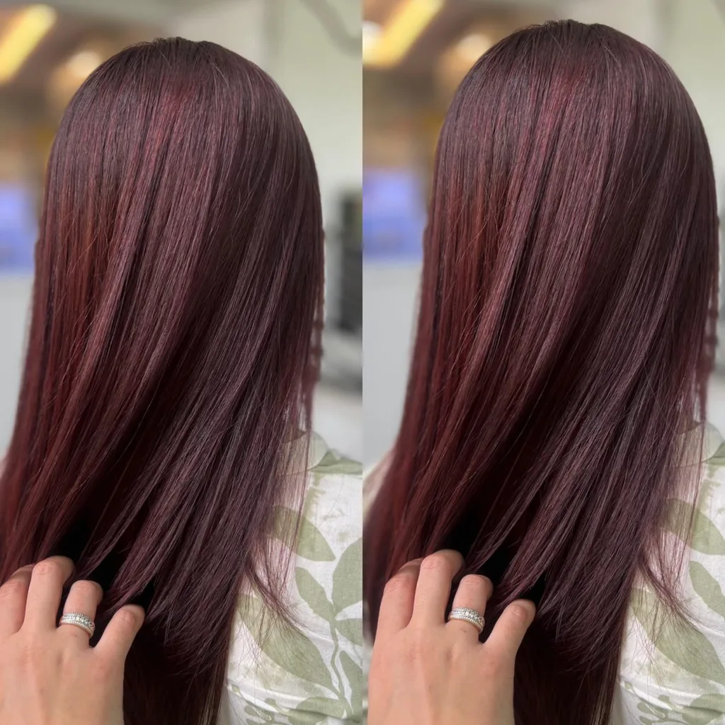 Somewhere between auburn and dusty rose lies this underrated gem: rosewood auburn. It’s a muted, mauve-toned red that adds elegance without being too loud. Ideal for professionals or anyone who wants a sophisticated but trendy color, it suits cooler complexions and straight or softly curled hair. If you love muted neutrals in your wardrobe, this tone will complement your style effortlessly. Extend its wear with a color-enhancing gloss treatment every few weeks.