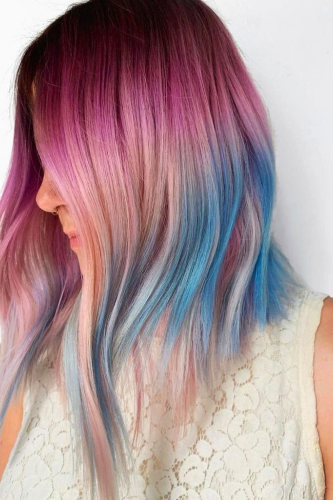 The smooth transition from rich magenta to pastel pink and then to electric blue creates a mesmerizing gradient effect.