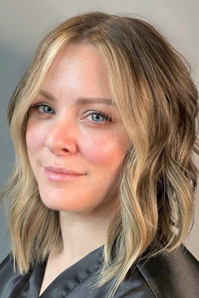 The beachy waves’ textured lob perfectly captures a laid-back, sun-kissed vibe. This style features loose, tousled waves that create a carefree, effortless look.