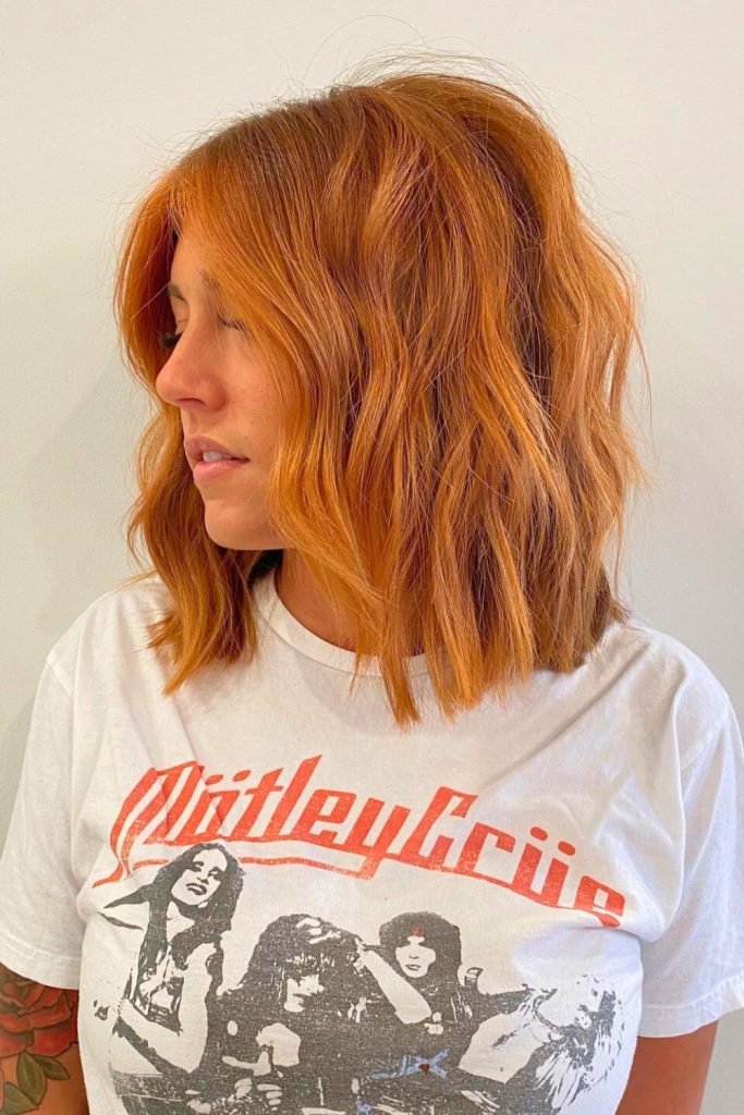 The fiery copper lob is a vibrant and bold hairstyle that radiates warmth and energy.