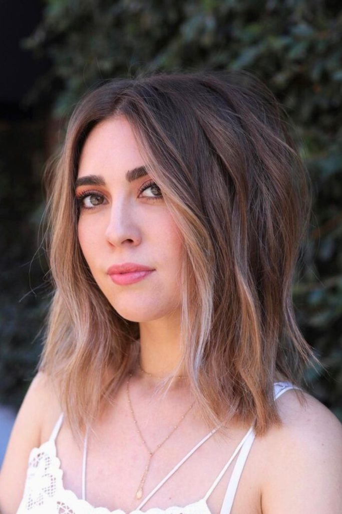 5. Warm Balayage Textured Lob