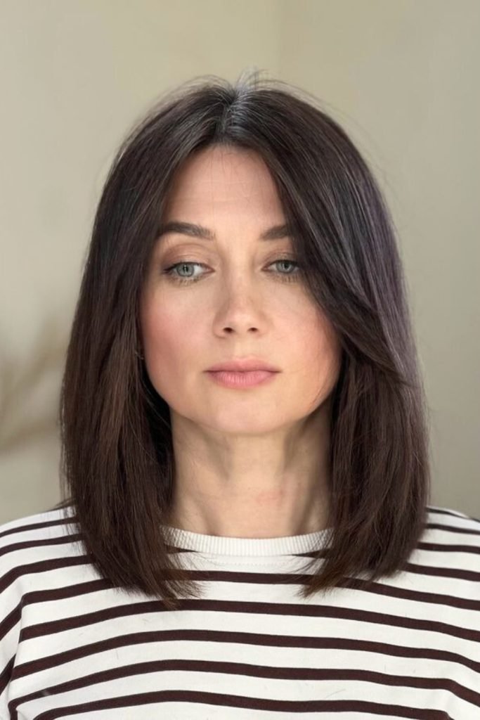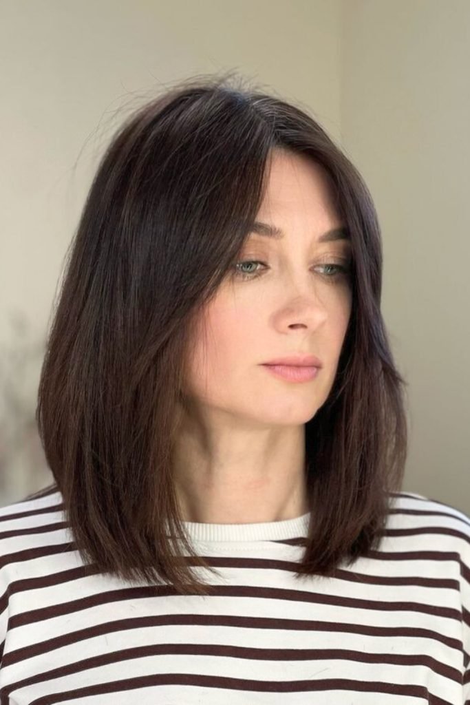 This style maintains the lob’s length while adding a touch of sophistication with its smooth finish.