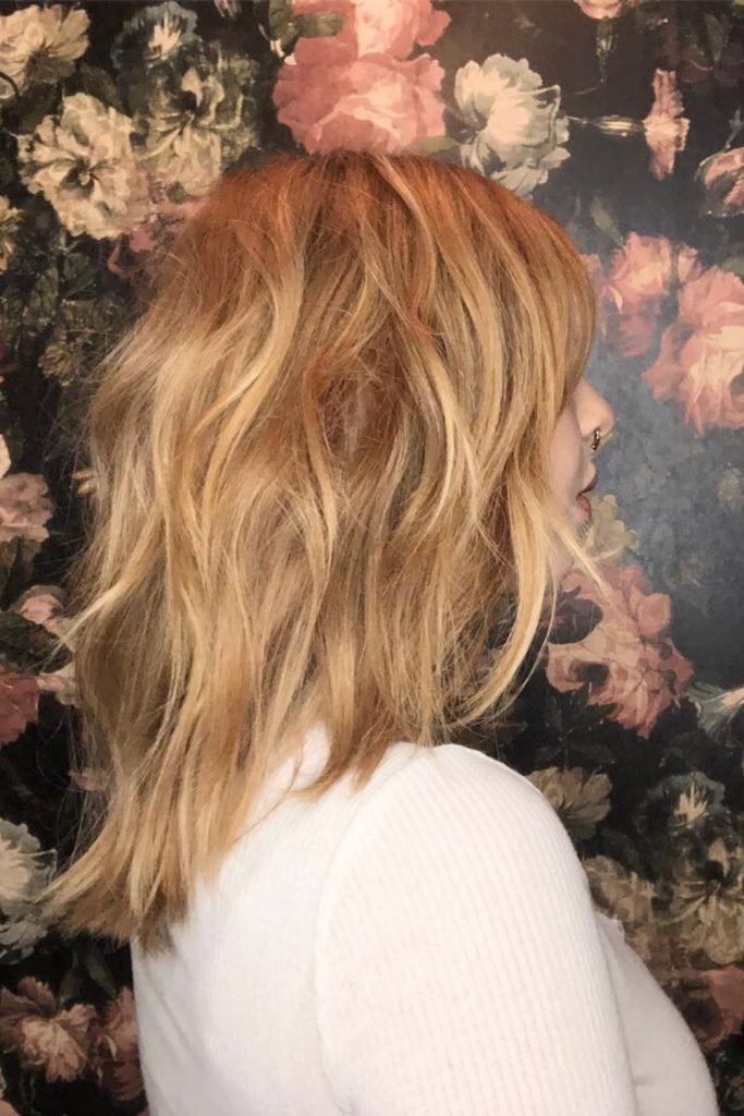 This style features soft, wavy layers that add volume and movement, enhancing the highlighted strands.