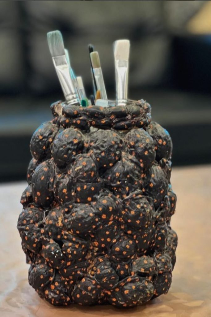 Crafted with a textured, bubble-like design, it adds a rustic charm while keeping makeup brushes neatly organized.