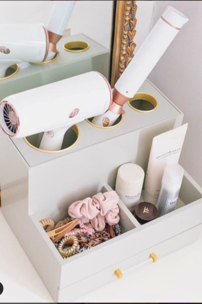 This multi-functional hair tool organizer is a game-changer for vanity setups.