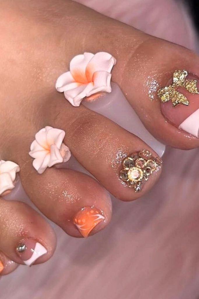 11. Luxe Floral Gemstone Pedicure